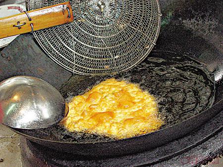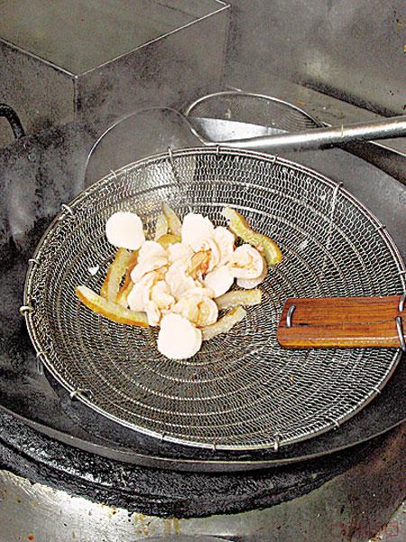 要將大大片的墨魚膠炸熟,須先猛火將表面炸至金黃,後轉慢火將內裏炸熟,最後轉猛火將油份逼出。