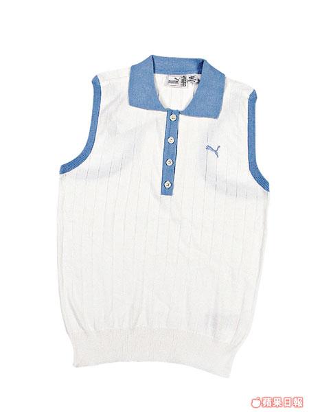 白色底配合藍色條紋,加上闊膊、收腰設計使身形顯得更修長。