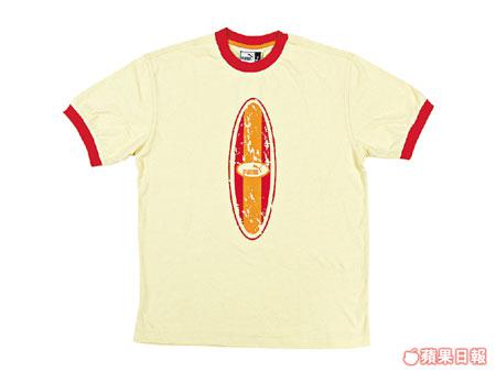 簡單文字圖案Tee,屬永遠長青款式;杏色滑浪板圖案Tee則是周末到海灘消閒的裝束。