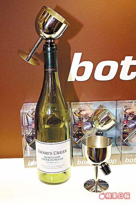 一物二用的Drink-me酒樽塞,酒杯以不銹鋼製成,每個售價210港元。 (J-me)