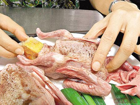 糭不能塞太多進乳鴿肚內,因為煮熟後的乳鴿會收縮,肚內的空間便沒那麼多。