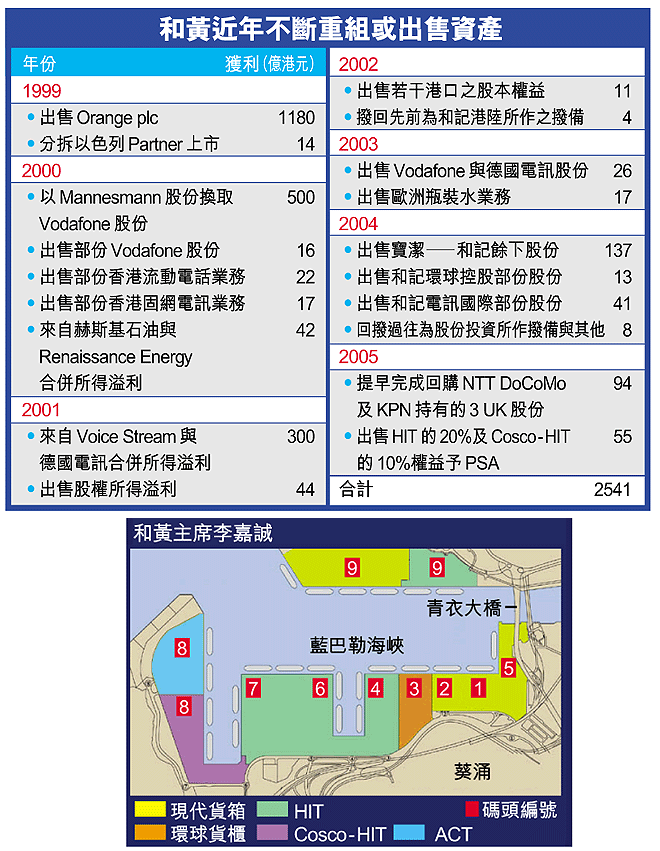 計及上月和黃提早回購NTTDoCoMo及KPN於英國3UK的權益,共獲94億元盈利,和黃上半年的特殊收益達149億元,足以紓緩全球3G業務的龐大虧損。和黃發言人接受查詢時指出,出售與粉飾業績完全無關,純粹因價錢合理,引入該股東也可建立有力及強大的聯盟,以提升價值。