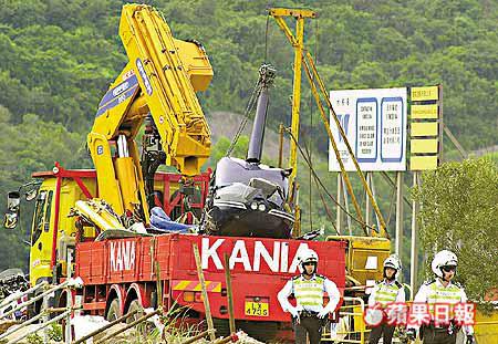 警方機動部隊人員亦在草坪搜索損毀機尾組件但無發現,飛行服務隊人員稍後以鋼纜扣在直升機殘骸準備吊運,下午二時,超級美洲豹直升機徐徐起飛把直升機殘骸及其他組件吊運到一公里外的西貢萬宜路,再由吊機吊上貨車,然後由警車開路送到赤鱲角飛行服務隊總部機庫存放,供日後調查。