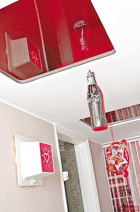 若不想大搞花臣,也可學Sunny,不用裝上任何燈光,而將假天花換上兩塊透明紅膠片,掛點可樂小吊飾,也可做到調色及點綴的作用。