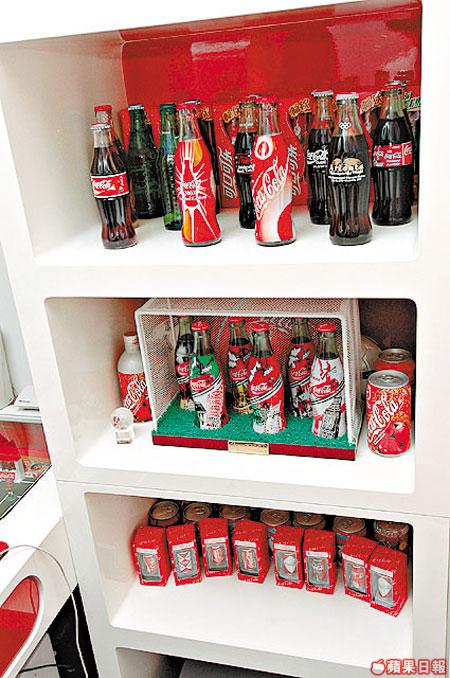 儲可樂儲了十幾年的Sunny由搖搖同鋁罐開始,到現今有成2,000件可樂產品咁大規模,各地可樂、CDPlayer、雪櫃、足球擺設甚至廣告牌乜都有。但以前儲得多都只可以一箱箱放入櫃放入床下底,𠵱家終於有機會重見天日,客飯廳和書房的飾櫃、組合櫃都專為放可樂而設,連Sunny都笑說:「所以多需要些真正用來儲物的空間!」