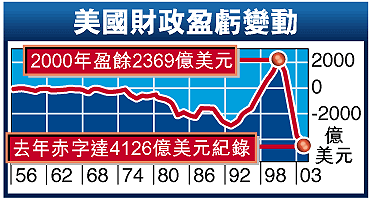 雷曼兄弟和高盛證券的經濟研究員估計,美國本年度(截至9月底)財赤會減至3500億美元,相當於GDP的2.8%,意味財赤自2000年至今首見改善。