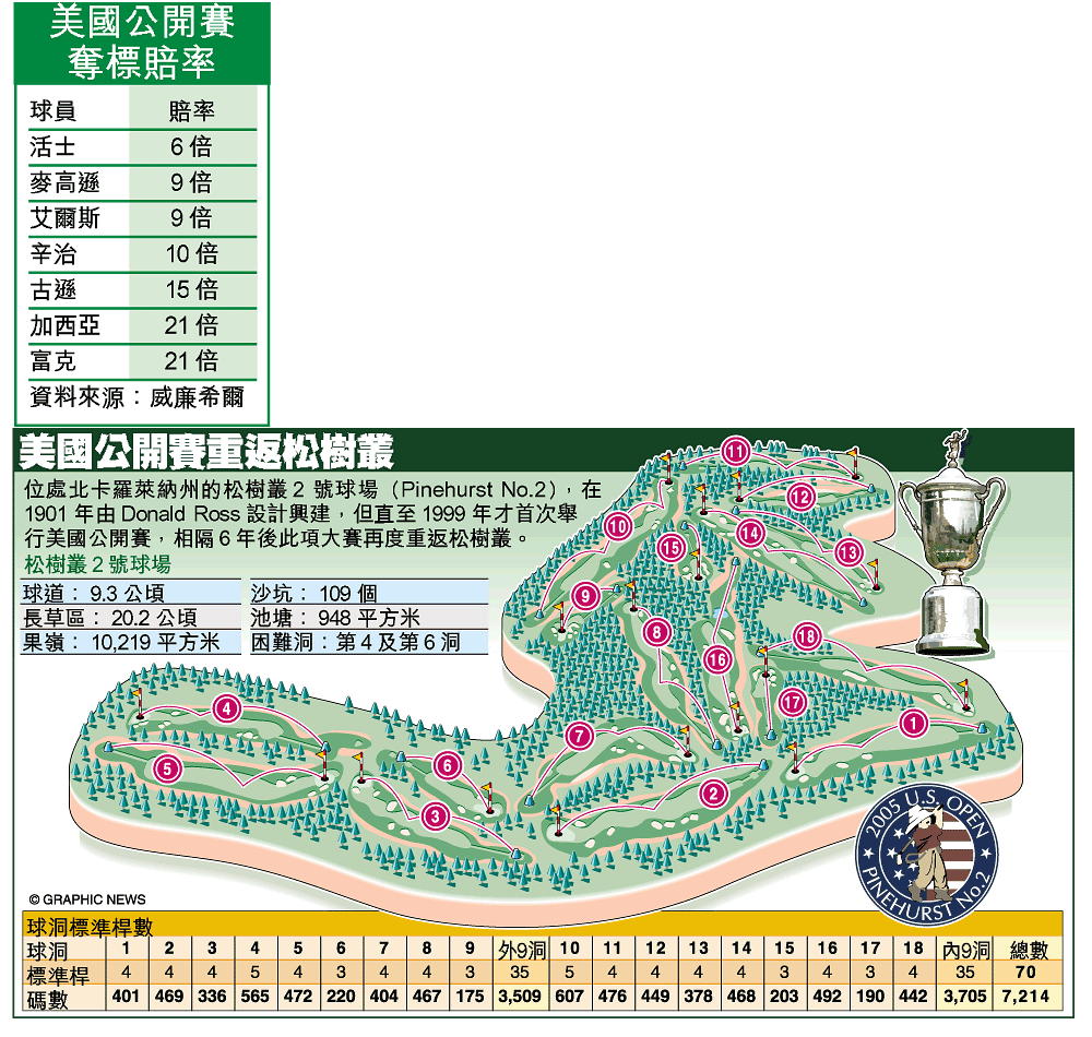 第一○五屆美國公開賽明日將在北卡羅萊納州的松樹叢二號球場(PinehurstNo.2)舉行,三年前同一賽事上,活士摘下其第八個大滿貫錦標後,毅然決定改革自己的揮桿技術。