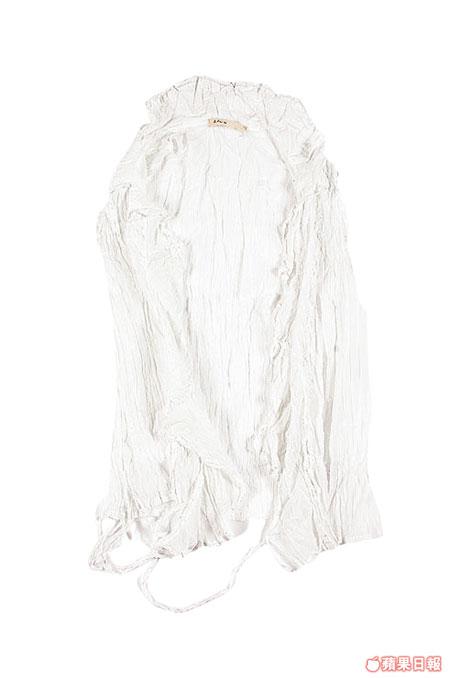 基於白色素淨,在剪裁方面就要花點心思,太Plain的款式會令衣服看來單調。不少品牌的白色衣衫,就着重以Drapes墜褶或不規則剪裁BiasCut再加強衣服的線條及層次感,讓衣服穿上身時隨着身驅擺動帶出流動的美感,如Tata-Naka這件HalterNeck小背心,心口有墜褶,AnnDem的白裙也有一片片不規則的裁剪,帶出飄逸的美態。