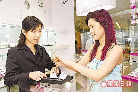 陳穎妍最近主持無綫節目《東張西望》,獲珠寶公司MaBelle贊助出鏡鑽飾,她早前抽空到中環IFC的MaBelle專門店挑選,對飾櫃內設計新穎的鑽飾愛不釋手。