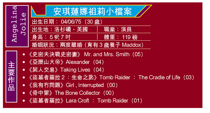 安琪蓮娜祖莉(AngelinaJolie)近年紅爆荷李活,片約不絕的同時,身邊緋聞男友亦轉不停,當中包括剛在港上演的賣座電影《史密夫決戰史密妻》戲中型男畢彼得;儘管祖莉擅於否認緋聞,但她永不會拒絕與一位男士的「頻密約會」,此幸運男士正是其健身教練彼德遜(GunnarPeterson)。