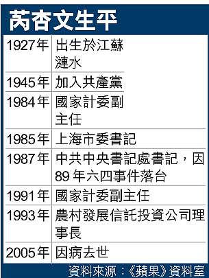 原籍江蘇漣水的芮杏文,被視為改革派,與趙紫陽關係非常密切,八七年獲選為書記處書記,翌年接任中央宣傳思想工作領導小組副組長,主管意識形態。當時,芮杏文力主放鬆對傳媒的控制,令國內出現言論自由的「小陽春」。八九年「六四」後,芮杏文隨趙紫陽下台,兩年後才再獲委為國家計委副主任。今年一月趙紫陽去世後,芮杏文夫婦曾致送花圈。