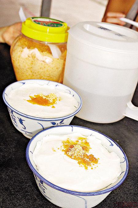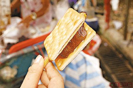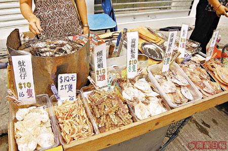 遊畢悟園,往北走約一小時就可到達大澳,但將近到達之前,有一段十分陡斜的路,斜度足有40度,走得腳尖也痛起來。在山上走了近三小時,有點累,也有點餓。是時候醫肚,除了雞屎藤的茶果,今次可以試試新花款──南瓜眉豆粿,不過吃不出有南瓜的味道,還是冰凍豆腐花、麥芽糖夾餅更合口味,但怎也逃不過即叫即烤魷魚乾的香味。