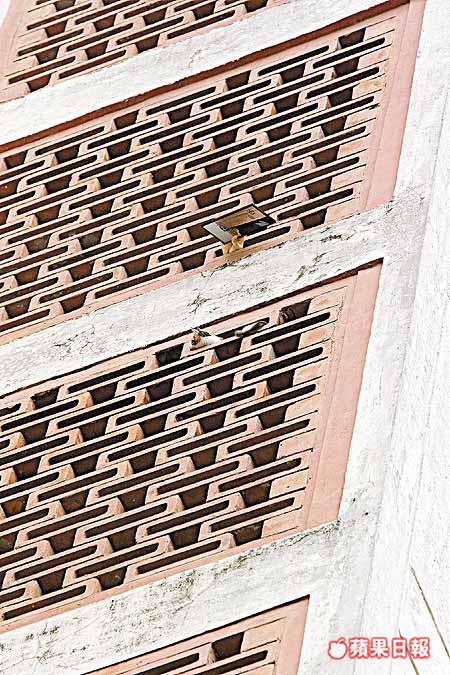 【本報訊】觀塘康利道康利苑上演救貓記,昨午一時許,五樓一名女住客發現所養心愛花貓困於七樓梯間牆壁一個半呎高隙縫動彈不得發出哀鳴(圖二)。消防員趕至營救,先以鏡子探出外牆觀察花貓情況,稍後消防員決定由上層吊下布袋誘捕花貓(圖一)。 經多番嘗試,花貓終爬入布袋,消防員於是索緊布袋拉回上層救回花貓,女主人滿心歡喜接過花貓回家去。 胡恩宏攝