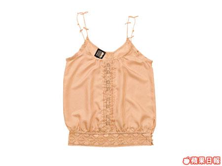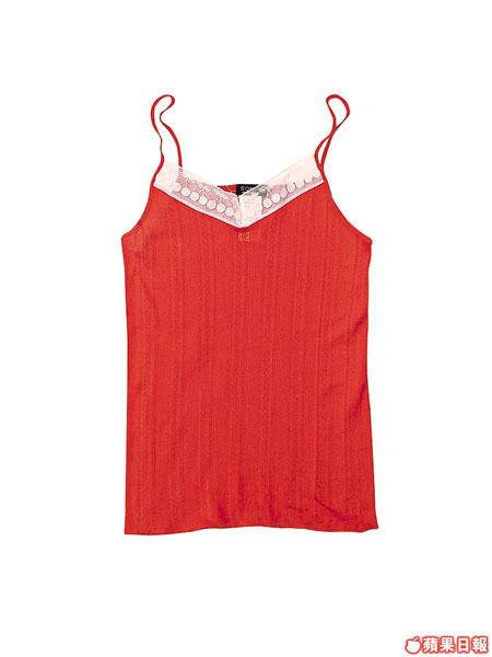 ■Sonia紅色吊帶背心,胸前飾以一行米通花喱士。$990(I.T)