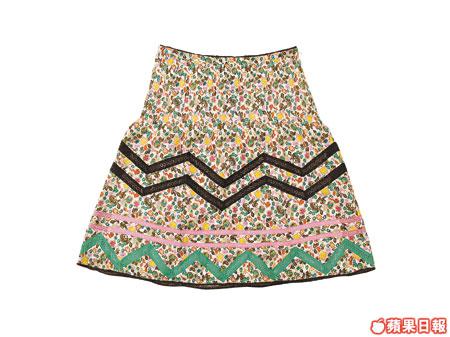 ■Cacharel花花半截裙,有數行ZigZag紋的米通花喱士。$2,490(I.T)