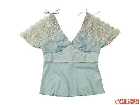 ■Paul&Joe粉藍色V領上衣,袖位飾以米通花喱士。$2,900(LC)