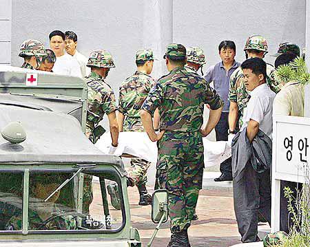 「轟!」駐守在鄰近兩韓三八分界線的南韓士兵周日凌晨好夢正酣,突然給一記手榴彈爆炸聲驚醒,以為是北韓揮軍南下了。但他們睜開眼睛,只見一名同袍,手持K-1自動步槍,紅着眼睛瘋狂掃射,在「砰!砰!砰!」的槍聲下,血洗營房,當場造成八死兩重傷。這名發狂殺同袍的士兵被抓回後,說自己不堪軍官欺凌,一時衝動才釀成大禍。南韓總統盧武鉉對今次慘劇表示遺憾,聲言徹查。