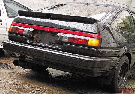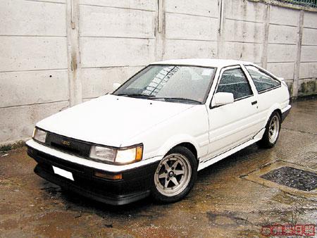AE86於1983至1987年間生產,係第5代Corolla跑車,車頭有「跳燈」及固定頭燈兩種,前者稱為TRUENO(即拓海用車),後者則稱作LEVIN。來到長沙灣優質汽車交易廣場,即見TRUENO同LEVIN各一,前者為日本入口二手車,已改裝為玩飄移的設定,LEVIN則係本地車。兩車色水同主角戰車有出入,不過可以噴油改裝,每架另加收費$5,000。