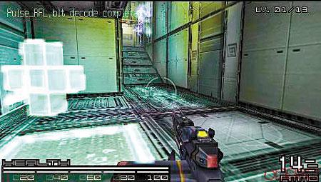 《CodedArms》對以記地圖、記怪物位置嘅「打寶」玩家,可能會係一個挑戰!因為玩家死咗之後,或重打同一個關卡,整體版圖的設計,以至怪物出現的位置都會有所不同,更重要係一啲「罕有」道具都好似「有腳周圍走」,每次玩都好有新鮮感。雖然地圖次次唔同,不過就唔使驚會迷路,因為右上角會有一個立體地圖,顯示移動方向同所處身位置嘅出入口,相當好用。打怪時除咗考反應,其實遊戲都有唔少支援功能,例如當瞄準器接近怪物時,就會自動鎖定,對拎住部PSP通街玩嘅玩家就係唔錯設計,否則好難瞄準。今次試玩碟可惜未能試到無線部份,《CodedArms》可支援4人網絡對戰,有唔同模式,如搶旗及對戰等,比單打更為着重戰術。