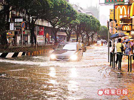 另一方面,澳門昨日亦受暴雨影響,幼稚園和中小學停課,各處低窪地帶均出現水浸,商舖因水浸無法營業,中區和新橋的交通陷於半癱瘓,車龍處處,十分混亂。水浸較為嚴重的包括提督馬路、鏡湖馬路及新橋區等,水深及膝、汽車拋錨、不少電單車被沖翻。除此之外,亦發生多宗護土牆坍塌、大樹倒塌等意外,幸無人受傷。