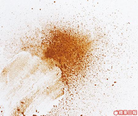 以古銅蜜粉透薄地打底後,在兩頰加上淡淡一層、深一號色的棕色腮紅胭脂。如皮膚白淨,只須在highlight位掃上深一號的碎粉便可。