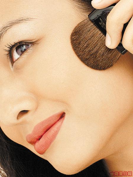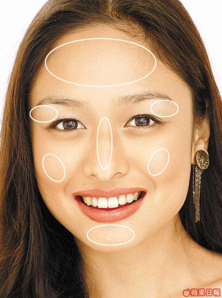 1.白淨膚色:只須將古銅碎粉掃在highlight位置(額頭、鼻、下巴、兩頰及眉骨),營造日曬後效果。