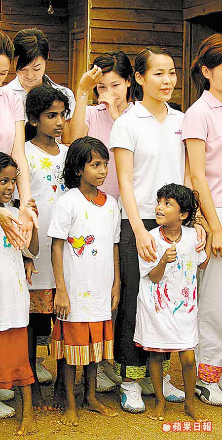 二○○五年度候選香港小姐前日在斯里蘭卡探訪海嘯災民,不少佳麗忍不住當場落淚,但仍裝出笑容。9號麥雅緻自覺福份並非必然,日後會更珍惜現時擁有的一切,至於10號黃家皚則表示為災民表現堅強而開心落淚。 記者卓美娟、葉君海斯里蘭卡直擊