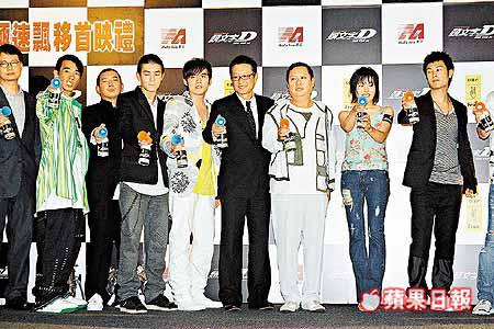 由劉偉強與麥兆輝執導、周杰倫、陳冠希(Edison)、黃秋生、鍾鎮濤、杜汶澤及鈴木杏主演的新片《頭文字D》,將於明日公映,前晚該片在銅鑼灣時代廣場舉行首映禮,而昨日周杰倫、黃秋生、余文樂與陳冠希等已飛往新加坡出席宣傳活動。