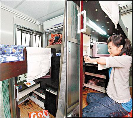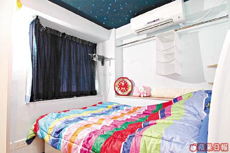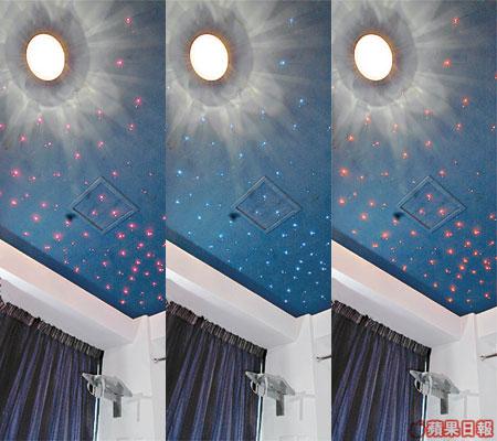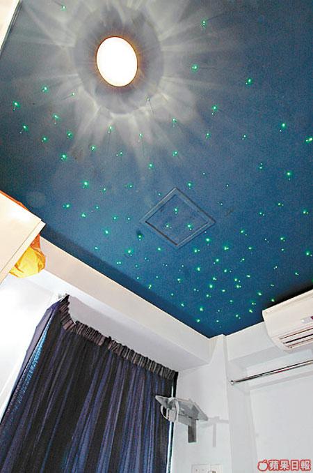 隱藏在鏡子後的睡房是一間連洗手間的睡房,七彩的床罩外,天花裝上點點星光。失眠夜,躺在床上,看着屬於自己的天空,星光燦爛,比任何催眠曲更易叫人入眠。