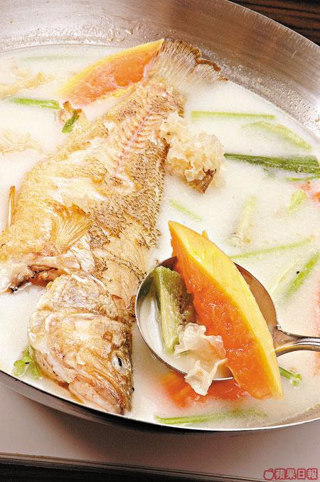 木瓜只微甜,雪耳與蘑菇本身味淡,故配原條加州鱸魚,貪其多肉兼味道較濃,可提升湯底鮮味。