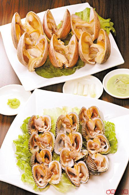 大蜆要完全灼熟,螄蚶則放湯5秒即起,蘸奇異果青芥末醬,有點吃日本刺身Feel。