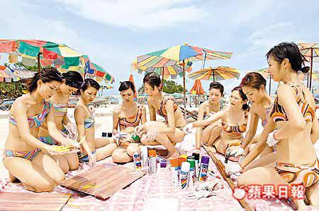 應屆候選香港小姐前日在布吉島拍攝泳裝外景,一眾佳麗在沙灘上豎起代表港姐的地標,吸引遊客觀光。另一方面,今年港姐可算是歷屆當中最多泳裝拍攝的一次,對於有佳麗傳出露毛疑雲,徐子珊昨日接受訪問時,拒絕透露去年參選時有否剃毛。