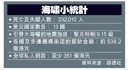 奪去至少二十萬人性命的南亞大海嘯,到前日(周六)剛過半年。一百八十多日不算長,受災地區的重建工作仍有漫長的路要走,至於在災難中家破人亡、失去至親至愛的災民,心仍然痛,小孩子會天真又哀傷地問:「我爸爸媽媽可以復活嗎?」