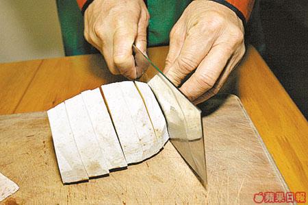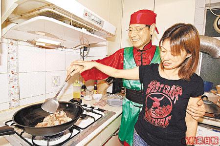 打電話給「功夫叔叔」潘振成,叫他為我們拿菜刀示範煮餸,誰知舞關刀、耍雙劍、玩三節鞭都揮灑自如的他,卻被一把菜刀考起,幸好有老婆的江西家鄉菜打救!原來平日對食甚為隨便的成哥最嗜辣,老婆的拿手辣菜正合他胃口,日日能夠晨早五點落樓練功,都係靠它咋!
