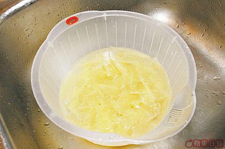 柚子皮3個、豬膶1副、檸檬汁1-2茶匙、鹽適量、生粉2茶匙