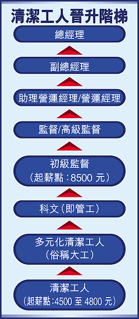 在香港,從事清潔行業對許多人而言,可能只是騎牛搵馬的過渡工作,不少人更戴上有色眼鏡看從業員,但今時今日,做清潔工作也可以出人頭地,因為現今的清潔服務不只是手作工夫,而是講求專業技巧,既是技術人員,又可美其名為場地「美術師」。