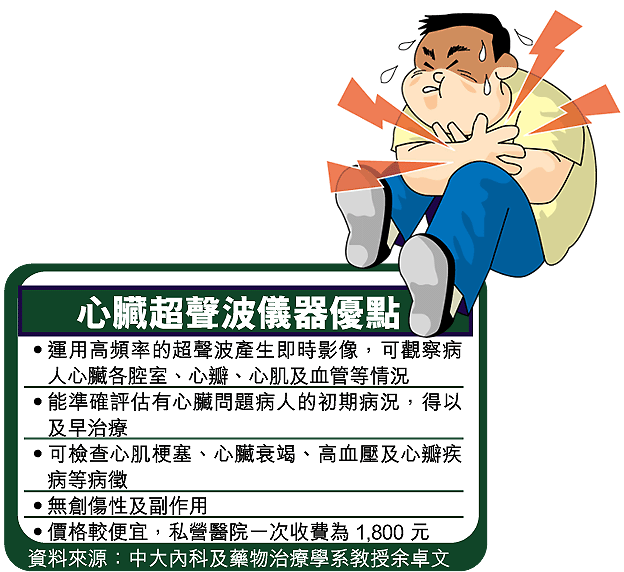 港人喜愛西式快餐飲食文化,加上缺乏運動,導致肥胖和膽固醇過高,是令近年因心臟病而死亡及入院人數不斷上升的原因。中大內科及藥物治療學系教授余卓文昨在記者會上稱,心臟超聲波儀器是運用高頻率超聲波,產生即時影像,令醫生可從電腦螢幕觀察病人心臟的各部份,如心瓣、心肌及出入心臟的大血管,有助及早了解病人病情。他指出,心臟超聲波儀器並能仔細檢測心肌梗塞、心瓣疾病及心臟衰竭等疾病。