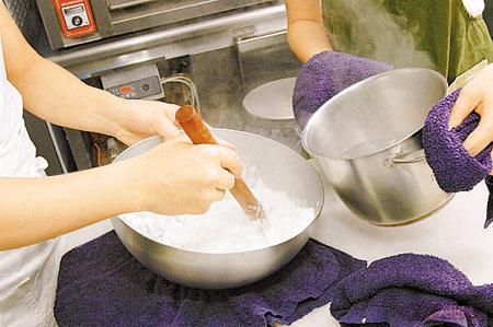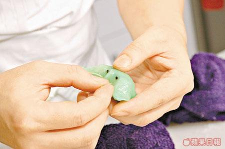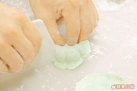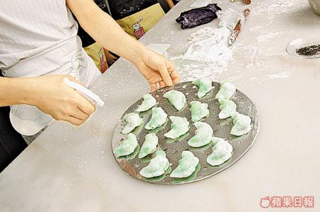 3.手拍乾粉:先撒上少許乾粉在手才搓,可免黏手。