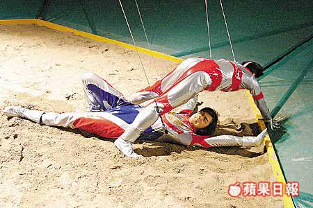 柏霖在其中一幕要被推落泥沙堆之中,他說:「我同對手都有吊威吔,我要攤喺沙上伸直手臂,對手就要拱橋同我對招,好多次佢手腳唔夠力,做唔到拱橋成個身壓住我,搞到我差啲窒息,而佢踢腿時又成日將沙粒踢起,搞到我食沙都食咗三四次。」