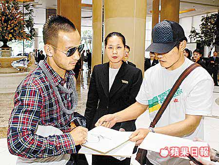 中田一改以往冷酷態度,甫下機已笑臉迎人,顯得十分親切,其中兩名男fans搞笑地向記者表示很喜歡中田的時髦打扮,但二人均異口同聲說不愛看足球。