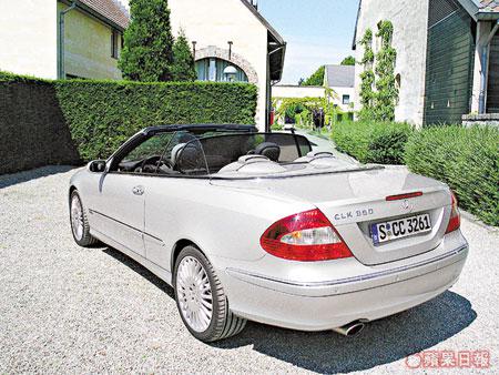 CLKCabriolet雖然沒有用上平治近年最紅的電動硬頂,但用家絕不需要擔心它的耐久性。廠方資料顯示,CLKCabriolet的軟篷機構由830件零件組成,單單軟篷已有6層,對耐熱及耐寒有很好的效果,而且亦已過廠方的140萬伏特電擊測試。早年在本港試車時,曾在氣溫高達36度的高速公路上塞車暴曬半句鐘,用手摸摸車廂內的軟篷頂,發覺與硬頂房車無異,車內的室溫仍極之理想,但車外的軟篷表層嘛?相信可以煎一隻荷包蛋吧!