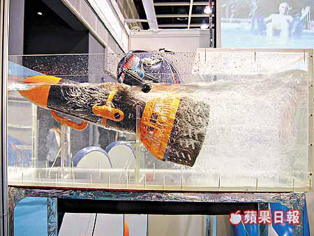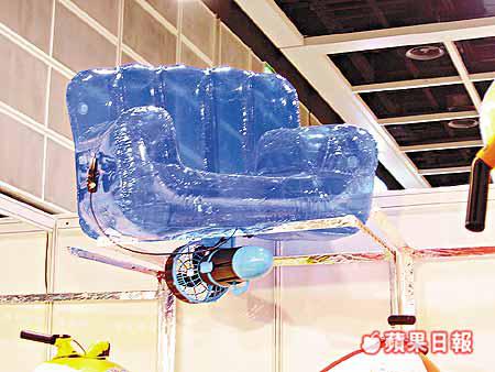 吹氣梳化底部加裝迷你摩打(圖),只需放入電池,即可在水中連續「行走」45分鐘,一如水上漂浮,每個出口價430港元。(SunChing)