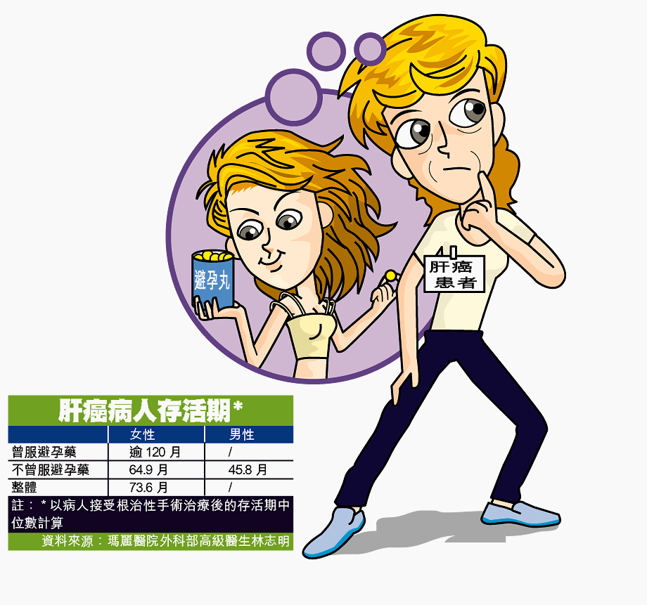 研究人員進一步分析後發現,若女性肝癌病人過去從無服用避孕藥,手術後的存活期中位數與男性並無大分別;但若女性肝癌病人過去曾服用避孕藥,手術後的存活期中位數則逾一百二十個月,即超過十年。