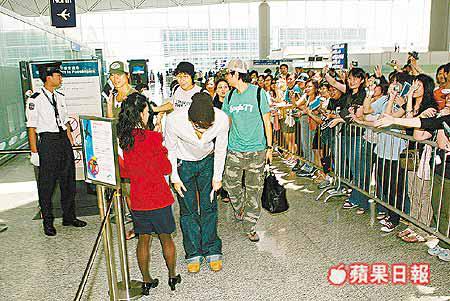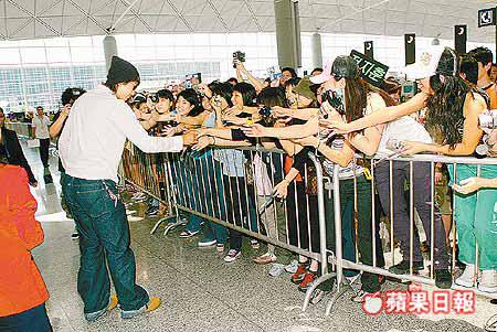 昨日約十二時許Rain已出現在機場,而前日的A貨Rain亦陪伴左右,準備陪他一起乘飛機返回首爾。當Rain現身機場時,所有歌迷都喝采兼起哄,環球唱片以圍欄阻擋了歌迷與Rain作近身接觸,但他卻十分識做,主動走近歌迷身邊,跟她們握手和簽名,逗得歌迷歡喜若狂。