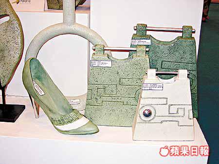 以MactanStone製成的擺設,配合女裝鞋及手袋的時尚設計,可用作花瓶或插乾花用。(AsianVine)