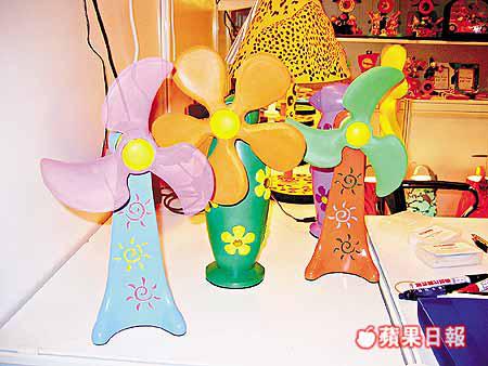台灣生產商開發的發泡膠小型風扇,9成銷往歐美市場,針對當地熱度較低,風扇力度不需太強而設,而物料可循環再用。(巧點)