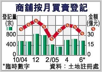 中原地產研究部指出,今年上半年錄得3353宗商舖買賣登記,較去年同期的2618宗升28.1%,並且超越97年同期2967宗水平,為95年下半年以來,首度逾3000宗登記。