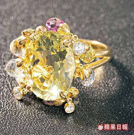 而新抵港的秋冬限量版finejewelry系列,猶如小女孩扮成公主戴上夢幻般的珠寶一樣,以巨型糖衣色調的半寶石為主角,非常甜美嬌俏。一枚重十九卡欖尖形黃水晶戒指,兩旁伴以色彩對比強烈的紅寶與藍色黃寶,搶眼可人,而每件首飾背後更有Dior的幸運星為標記。