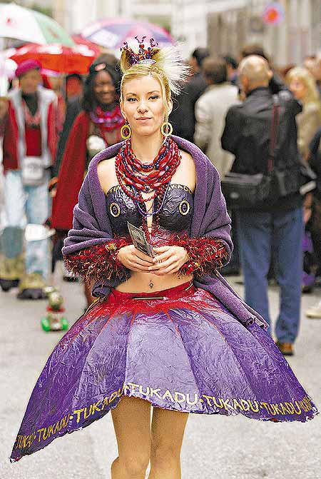 德國柏林上周六有一百名模特兒浩浩蕩蕩巡行(圖一),她們穿着的都是十名年輕時裝師設計的新裝,盡展新秀銳意求新的風格。
