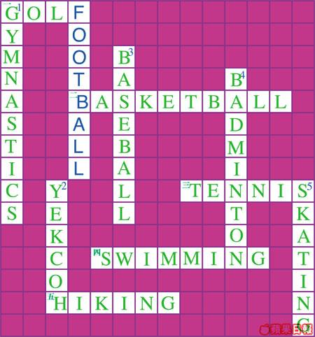 夏天是戶外活動的好日子,你鍾意哪項運動呢?你們知道它的英文名稱嗎?試試以下的填字遊戲,填出合適的答案。
